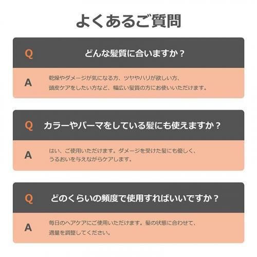 ●弱酸性、ノンシリコン、無鉱物油、無合成着色料、無合成香料。