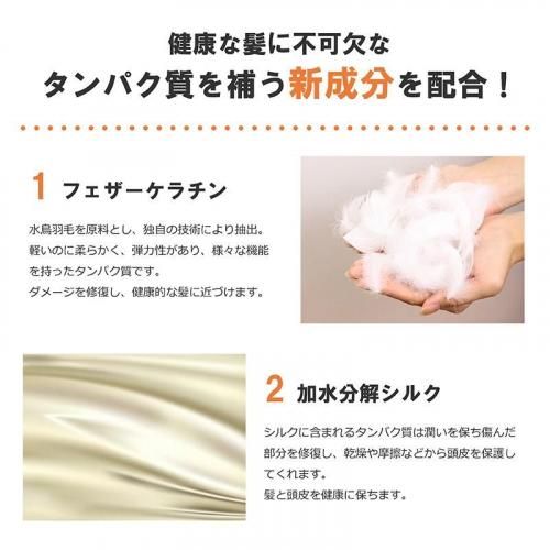 健康な髪に不可欠なタンパク質を補う新成分「フェザーケラチン」と「加水分解シルク」をシリーズ全商品に配合。