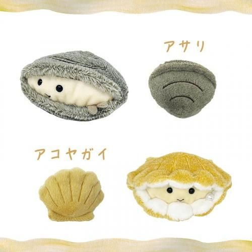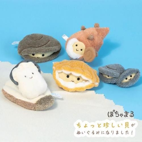 さらさらシャーベット生地を使用した、触り心地抜群の「ぽちゃまる」シリーズより、ちょっと珍しい貝のぬいぐるみが登場です!