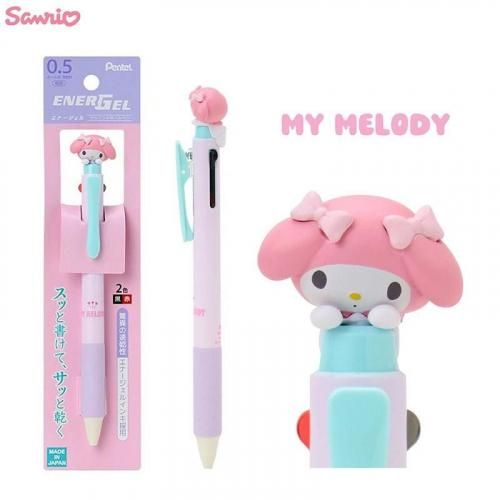 サンリオ マスコット付きエナージェル2色ボールペン ハローキティ マイメロディ ポムポムプリン シナモロール クロミ ポチャッコ 黒 赤 Sanrio